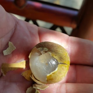 To je Longan. Sladké ovoce konzistence liči chutná jako angrešt. Je to vynikající a osvěžující.