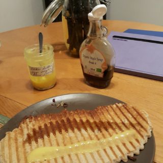 Pohankové crepes s vlašskými ořechy, javorovým sirupem a Lilikoi butter. Je to neskutečně dobré!