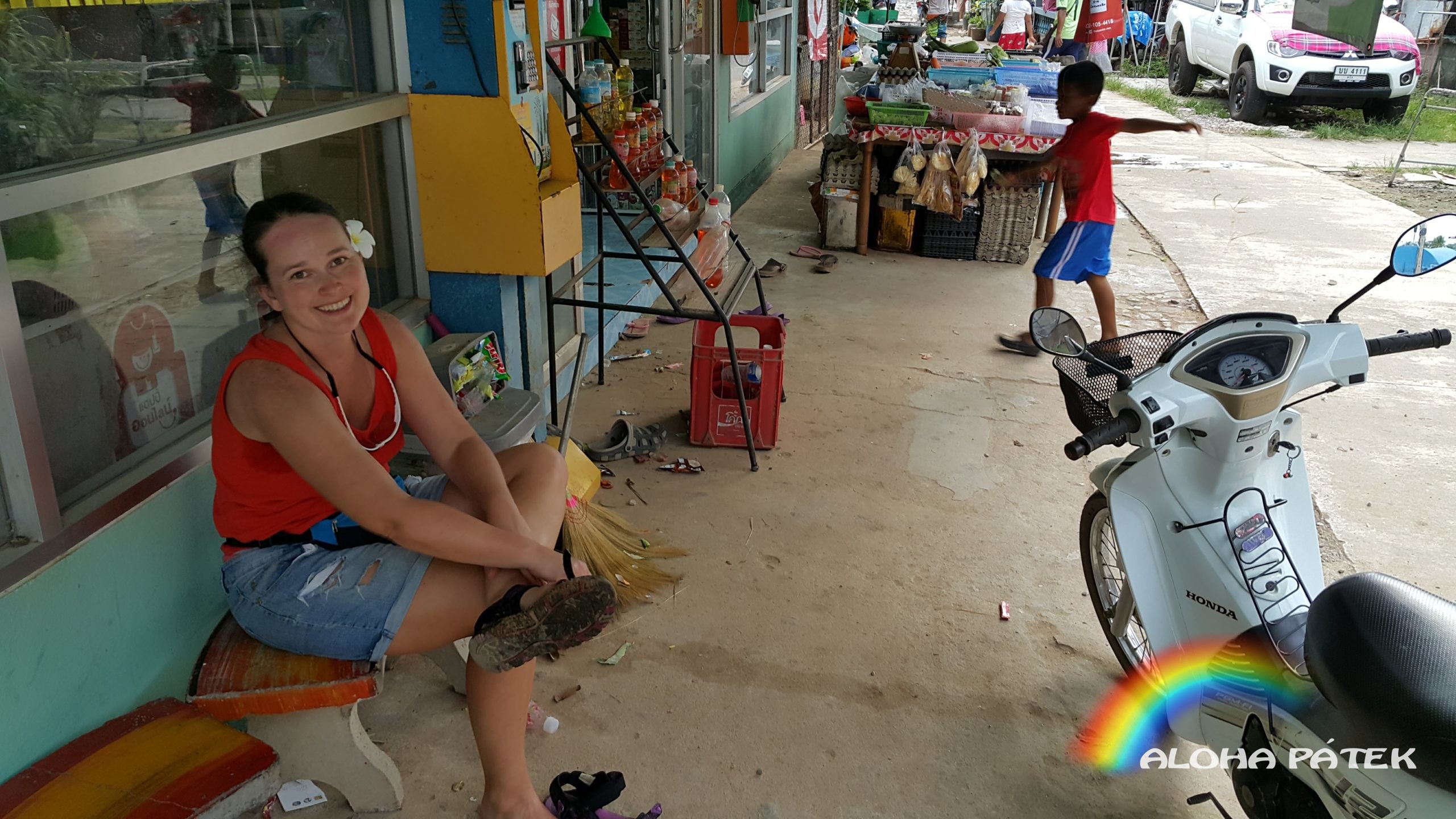 Protože skútrů je mnoho, tankuje se tady prostě jinak než u nás. Na každém rohu je k dostání nějaká ta PETka s benzínem, nebo si ji jednoduše koupíte v sámošce. Motorkový park je široký a vybrat si můžete cokoliv. Skútr s nájezdem 230 tis km není nic zvláštního. Před jízdou je ale dobré si vyzkoušet jestli moped dělá všechno co má, zejména jestli fungují brzdy. I když jsme vypadali divně, trval jsem na přilbě i když ji tady nikdo nevozí.