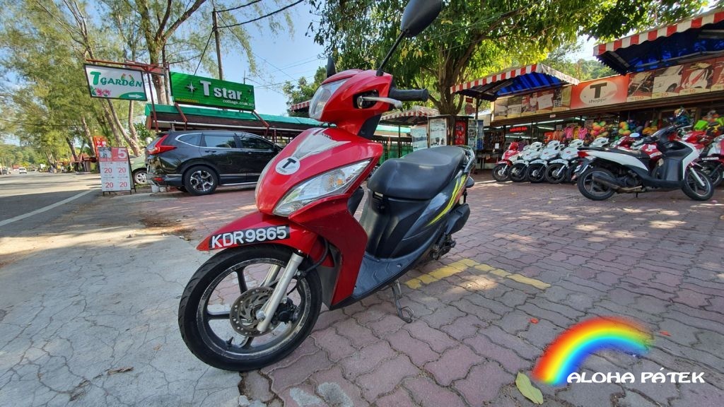 Denně jsme najezdili asi 150km tj 1/2 nádrže benzínu, za kterou jsme dali 32kč. Denní půjčení skútru je za cca 100kč Protože je kolem toho hodně papírování, je lepší si skútr půjčit na více dní a parkovat ho před hotelem jak to dělají všichni