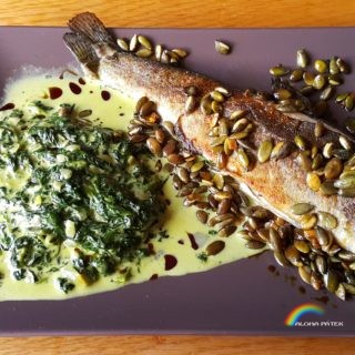 Pstruh s dýňovým semínkem a listovým špenátem GI 15